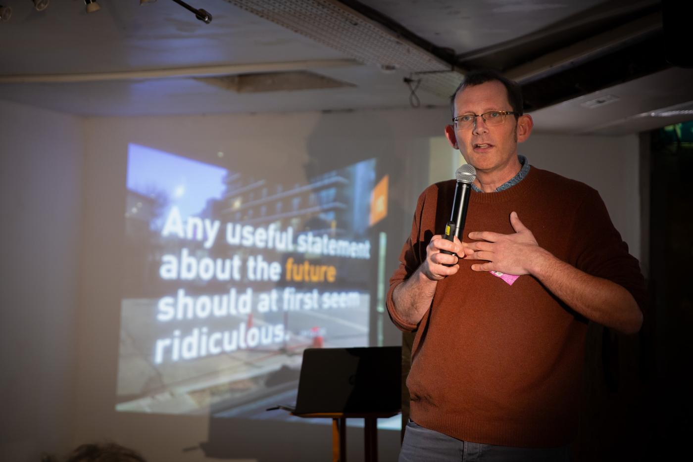 During the gathering, we time travelled into the future. Rob shared stories from 2036: rebel depaving movements that replace dull asphalt streets with shrubs and earth, bicycle lanes that weave their way across primary school roofs, and community energy co-ops that spring from residents tired of extractive energy monopolies. These were not imaginary futures, but real practices that are slipping through the tattered tears in the fabric of time into the present, in different neighbourhoods around the world.