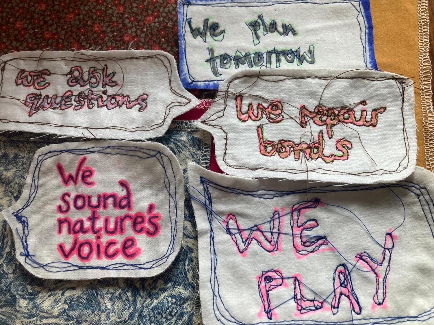We are working with textiles artist Bridget Ely to stitch these gifts into a sprawling community patchwork – with the vision of taking the patchwork on tour and continue to grow it, eternalising into fabric the collective power we hold as creatives.